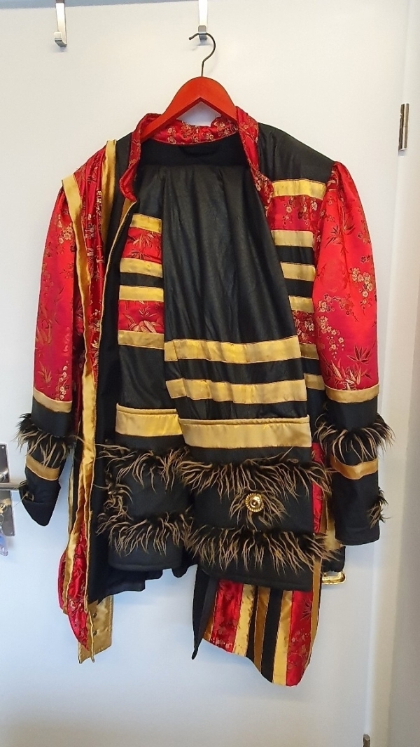 Das Kostüm (Mantel und Hose und Gurt) wurde mit viel Liebe für eine Person einer Guggenmusik genäht. Es wurde nur eine Saison getragen. Bitte direkt 041 250 18 78 kontaktieren oder falls dringend, wenn nicht erreichbar, bei schriftlicher Anfrage Telefonnummer für Rückruf hinterlegen; keine E-Mail-Adresse, danke.