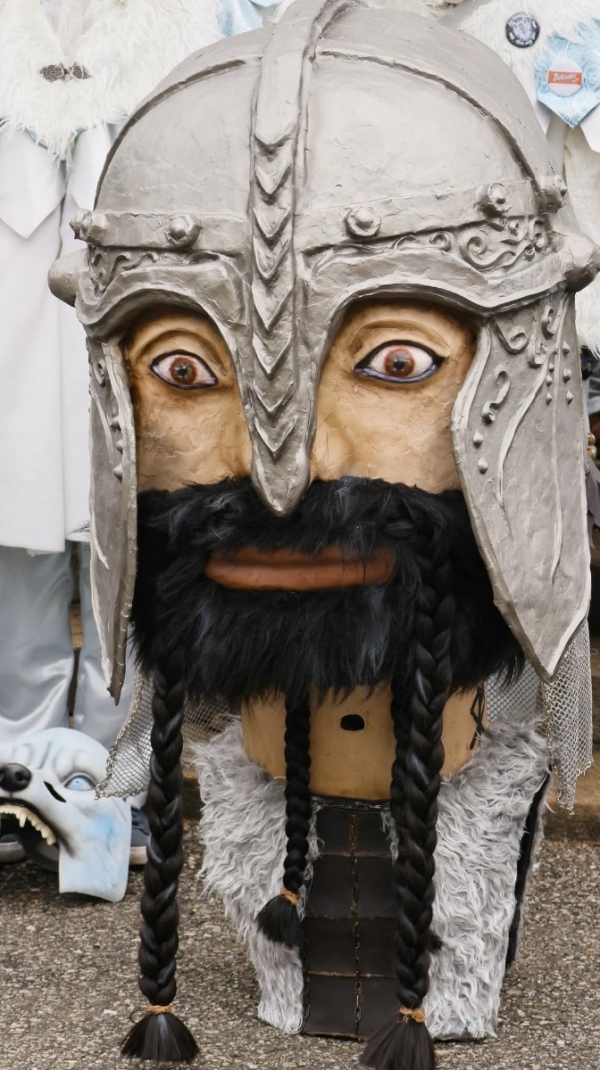 Die Tambimaske wurde von Hand gefertigt. Alles wurde von grund auf selber gebaut. Sie wiegt ca. 20kg und ist wenn sie am Boden steht ca. 145cm hoch.Das Kostüm ist ein nordischer Krieger. Auch das ist selbst gemacht und passt perfekt zu der Tambimaske.Dazu gibt es noch eine passende Axt als Tambistab.